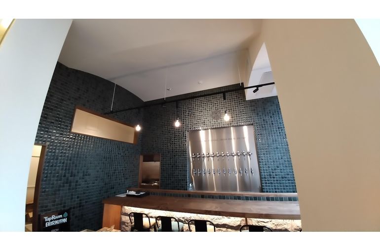 高天井によってサーバーとタイルの壁がより高級感を感じさせる仕上がりとなっています。