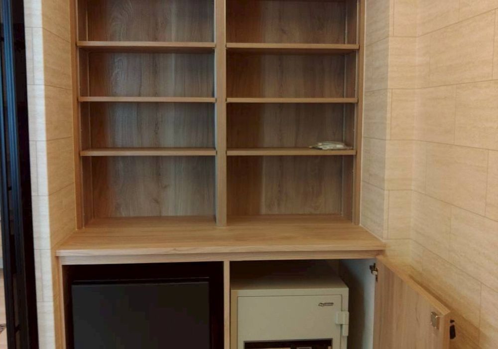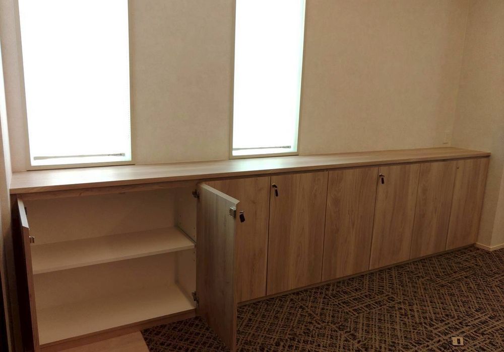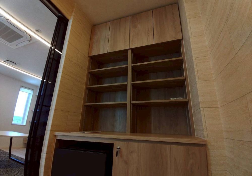 今回は白石区の事務所にて、収納造作や家具製作を行いました。機能性とデザイン性を両立させ、空間全体がより洗練された印象に仕上がっています。