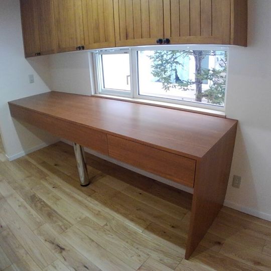 自宅の書斎です。 お仕事で施工することはあってもなかなか実現できなかった自宅の書斎の本棚とカウンターを施工しました。 松製剤塗装仕上げとし、節も気にせずダイナミックな見た目になりました。 上... -